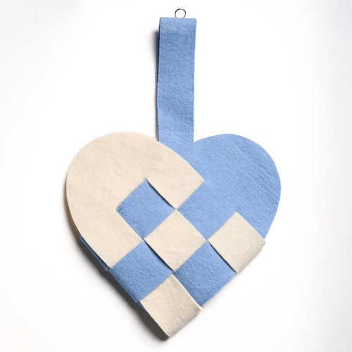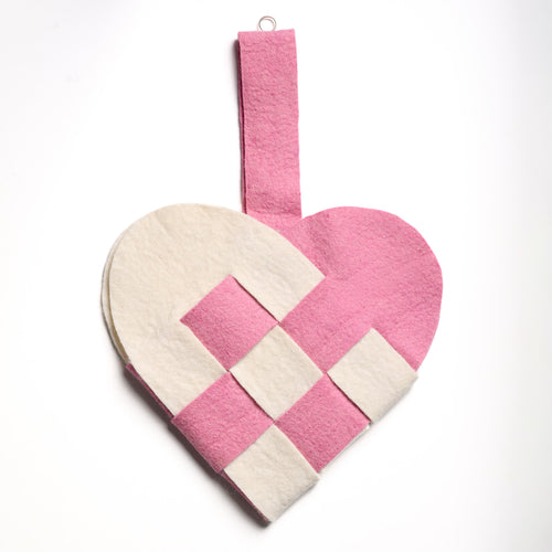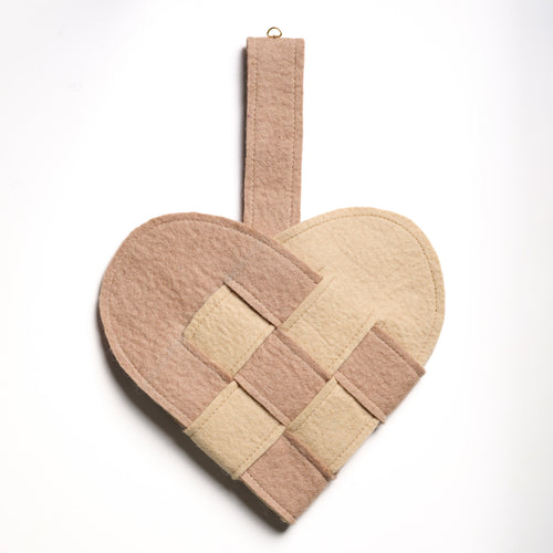Håndlavet hjerte af 100 % uldfilt. Perfekt til hoveddøren, børneværelset, stuen eller hvor du nu synes, det kan pynte.